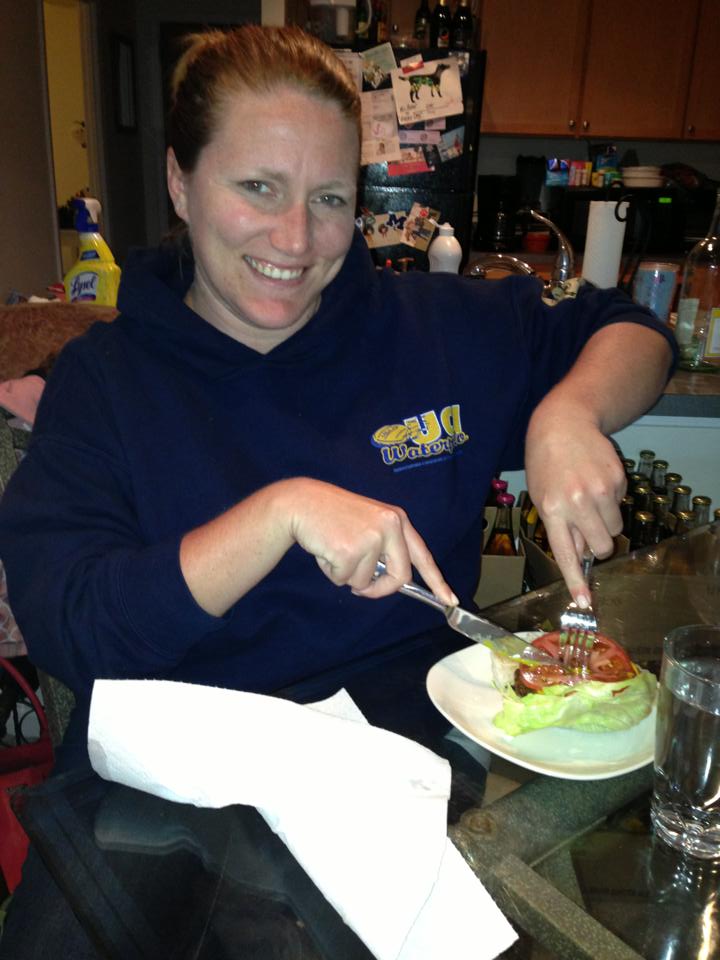 We won’t run down burger assembly–we’re assuming you can assemble a burger. We wrapped them in lettuce ’cause LG-the-weirdo doesn’t eat carbs.